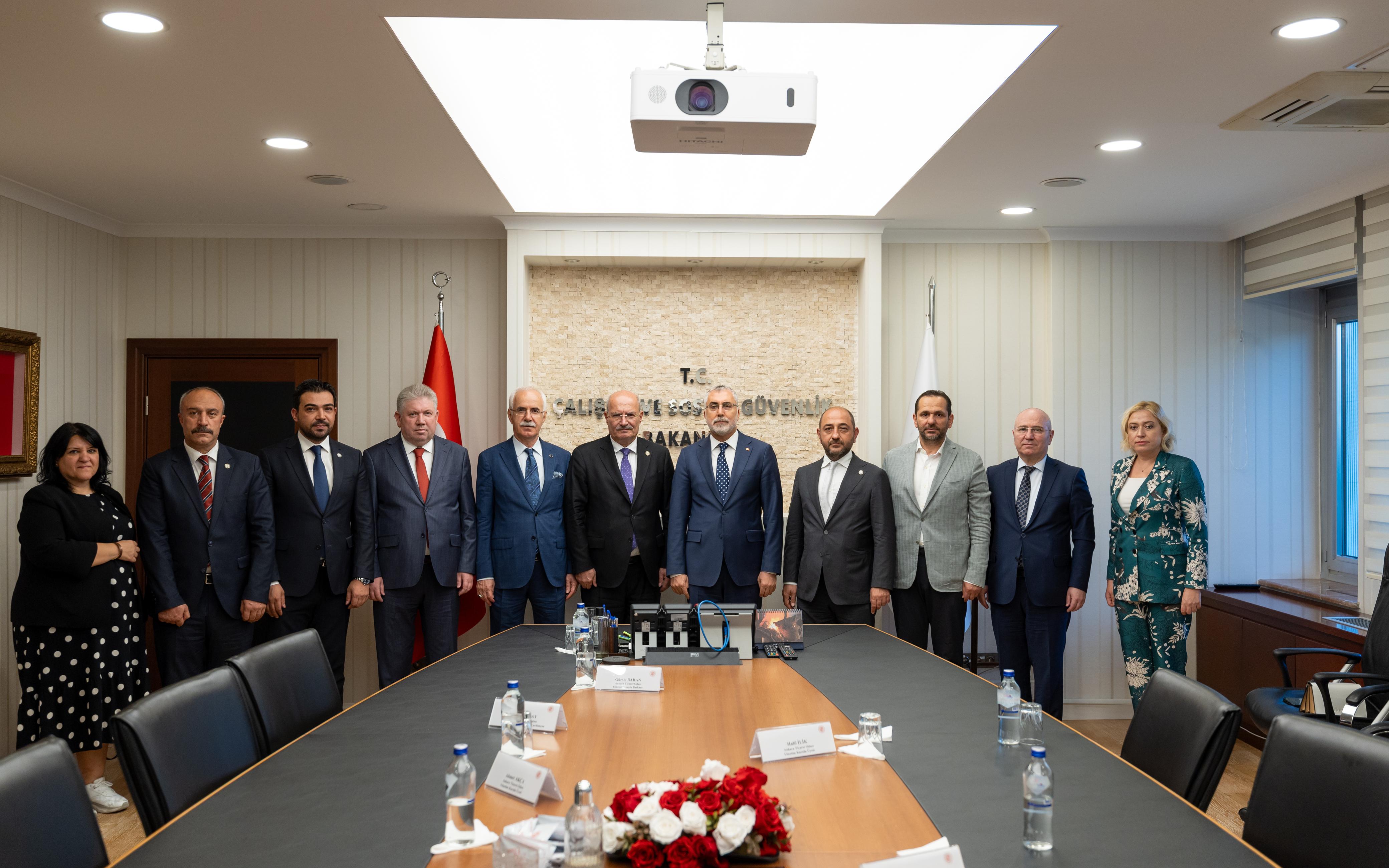 Baran, konuşmasında ATO üyelerinin Bağ-Kur'luların 9 bin gün olan prim ödeme gün sayısının, işçi ve memurların emekliliği için gerekli prim ödeme gün sayısı olan 7 bin 200 ile eşitlenmesi talebini de dile getirdi. İşçi-işveren davalarına da değinen Baran, işçi alacaklarına ilişkin zamanaşımı süresinin bir yıla indirilmesinin işletmeler açısından faydalı olacağını kaydetti.Baran, ayrıca hizmet alımı ihalelerinde mevcut hizmetin başka bir firma tarafından yüklenildiğinde personelin de yeni yükleniciye geçtiğini ve son işveren olarak özlük haklarından sorumlu olmak durumunda kaldığını belirterek, işveren değişikliklerinde kıdem tazminatı başta olmak üzere işçiye yapılması gereken ödemeler konusunda her işverenin kendi dönemiyle sorumlu tutulmasının sağlanması talebini dile getirdi.Çalışma ve Sosyal Güvenlik Bakanımız Prof. Dr. Sayın Vedat Işıkhan’ı makamında ziyaret ederek, ara eleman ihtiyacı konusu başta olmak üzere Ankara Ticaret Odası üyelerimizin gündeminde yer alan sorunları ve çözüm önerilerini arz ettik. Sayın Bakanımıza göstermiş olduğu yakın… pic.twitter.com/7wCzIr7aUg