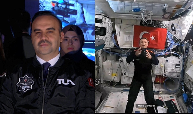 SANAYİ ve Teknoloji Bakanı Mehmet Fatih Kacır, Türkiye'nin ilk astronotu Alper Gezeravcı ile Bursa'daki Gökmen Uzay Havacılık Eğitim Merkezi'nde (GUHEM) video konferans aracılığıyla görüşme yaptı. Görüşme 20 dakika sürdü.Sanayi ve Teknoloji Bakanı Mehmet Fatih Kacır, Bursa’da GUHEM’de uzaya çıkan ilk Türk astronot Alper Gezeravcı ile Uluslararası Uzay İstasyonu'ndaki (ISS) 7’nci gününde video konferans ile görüştü. Yaklaşık 20 dakika süren görüşmede Bakan Kacır'ın yanında TEKNOFEST yarışmacıları ve girişimciler de yer aldı. Bakan Kacır, arkasında Türk bayrağı bulunan Alper Gezeravcı'ya "İnsanlı ilk Türk uzay bilim misyonunu inşallah sağlıkla gerçekleştirip dünyaya ve ülkemize dönmenizi diliyoruz. Sizi çok iyi gördüm. Nasılsınız?" diye sordu. Gezeravcı ise Bakan Kacır'ı Uluslararası Uzay İstasyonunda misafir etmekten son derece mutlu olduğunu belirterek şöyle konuştu: "Ülkemiz adına bu tarihi görevi gerçekleştirmiş olmak benim için büyük bir mutluluk. Bugün görevle Türk milleti olarak hayallerimizin gerçekleşmesinde katkım olduğunu bilmek, hem kendi adıma hem de ülkemiz adına son derece onur ve gurur verici. Göreve hazırlık sürecimizde her türlü desteği sağladınız. Karantina sürecinde heyetinizle birlikte çok büyük incelik göstererek karantina tesisine kadar gelip ziyaret ettiniz. Maneviyatı çok güçlü bir milletin evladı olarak bu ziyaretiniz bana devletimizin verdiği desteği en üst düzeyde hissettirdi ve çok moral verdi. Nezaketiniz için size ve süreçte katkısı olan tüm kurumlarımıza emekleriniz ve destekleriniz için çok teşekkür ederim. Bu yoğun manevi hazla birlikte çok iyiyim. Çok teşekkür ederim Sayın Bakanım."Uzay çalışmalarının bilimsel ve teknolojik ilerlemenin yanında uluslararası iş birliklerinin de öncüsü olduğunu hatırlatan Bakan Kacır, "Günlük çalışmalarınızda paylaşım ve iş birliği içerisinde olduğunuzu takip ediyoruz. Dün de bir yemek fotoğrafınıza şahit olmuş olduk. Eminim farklı ülkelerden astronotların bir arada olduğu çalışma ortamınız sizin için de heyecan verici bir tecrübedir. Bu vesileyle orada bulunan tüm astronotlara, kozmonotlara Türkiye'den selamlarımızı iletmenizi istiyoruz. Ay yıldızlı bayrağımızı bu uluslararası platformda gururla taşıdığımız için sizi bir kez daha milletimiz adına tebrik ediyorum" dedi.