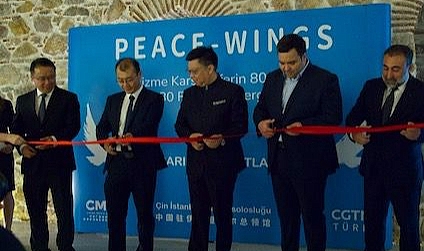 Çin halkının 2. Dünya Savaşı’nda Japon işgaline karşı verdiği direnişi anlatan ve CGTN Türk'ün ev sahipliğinde gerçekleşen “Barışın Kanatları” fotoğraf sergisi, Ortaköy’deki Tarihi Kethüda Hamamı’nda ziyarete açıldı. Açılışta Çin Halk Cumhuriyeti İstanbul Başkonsolosu Wei Xiaodong, CHP İstanbul Milletvekili Yüksel Mansur Kılınç, Beşiktaş Belediye Başkanı Rasim Şişman, CGTN Türk Genel Yayın Yönetmeni Ulaş Can, ICBC Türkiye Yönetim Kurulu Üyesi Xiao Li, Xinhua Haber Ajansı İstanbul Bürosu Direktörü Fu Yunwei barışın evrensel değerine vurgu yaptı.