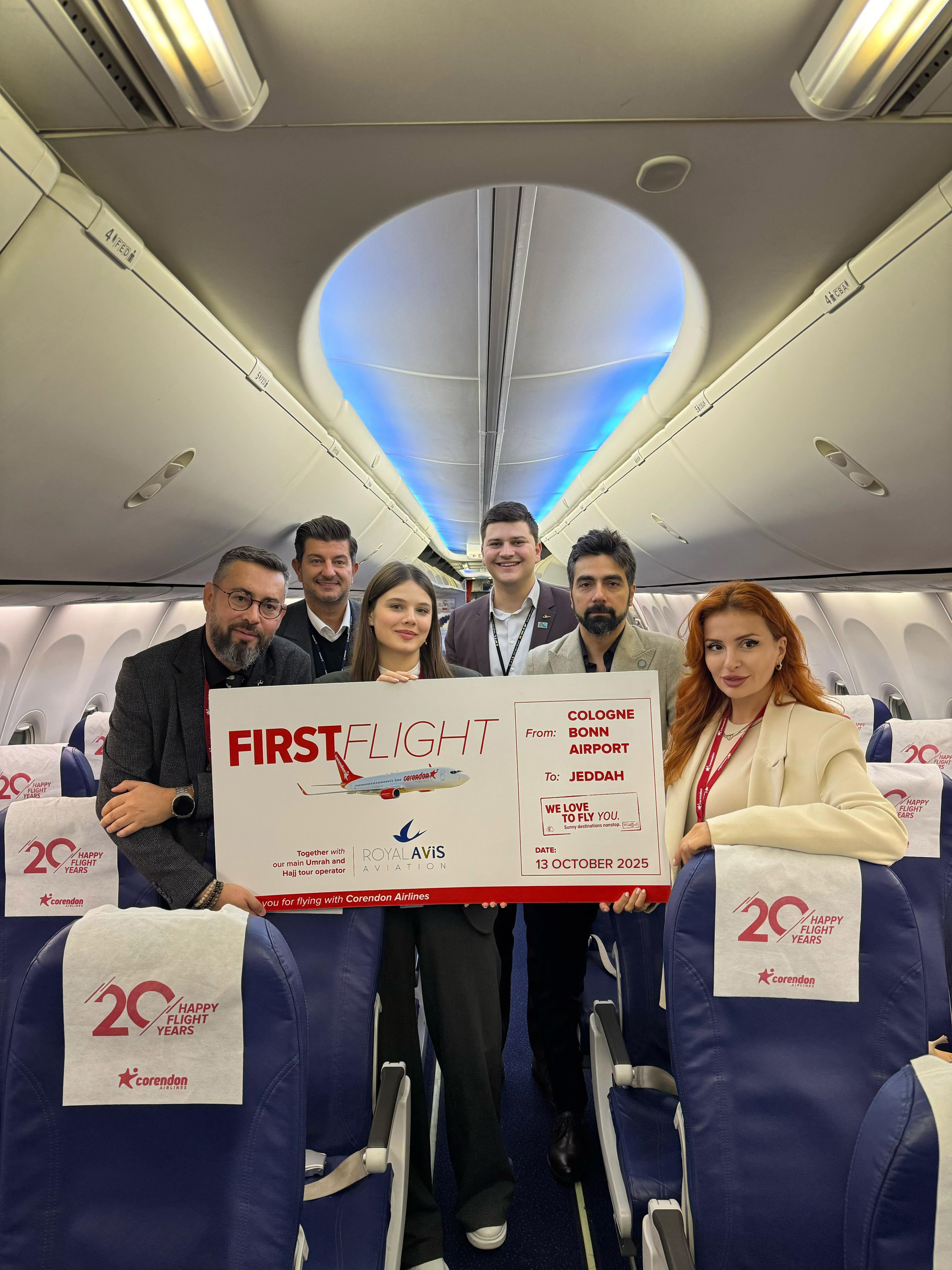 Corendon Airlines’ın kutsal topraklara yönelik yeni uçuş operasyonunun ilk seferi, 13 Ekim 2025 Pazartesi sabahı Köln/Bonn Havalimanı’ndan Cidde’ye başarıyla gerçekleştirildi. Bu uçuşla birlikte Corendon Airlines, 20. yılında Avrupa’dan kutsal topraklara doğrudan ulaşımda yeni bir dönemi başlatmış oldu.