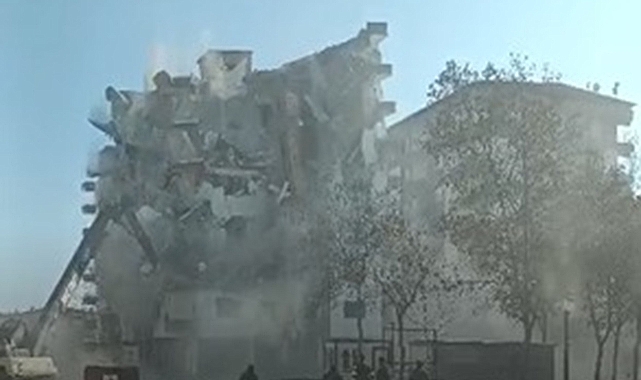 DİYARBAKIR’da depremde ağır hasar alınca boşaltılan 8 katlı bina, yıkım sırasında çöktü. O anlar, cep telefonu kamerasına yansıdı.Kahramanmaraş merkezli 6 Şubat 2003’te meydana gelen depremlerde ağır hasar alınca tahliye edilen Kayapınar ilçesi Peyas Mahallesi 230’uncu Sokak’taki 8 katlı bina için yıkım çalışması başlatıldı. Ancak bina, yıkım sırasında çöktü. Çökme ile çevreyi toz bulutu kaplarken, o anlar cep telefonu kamerasına yansıdı.