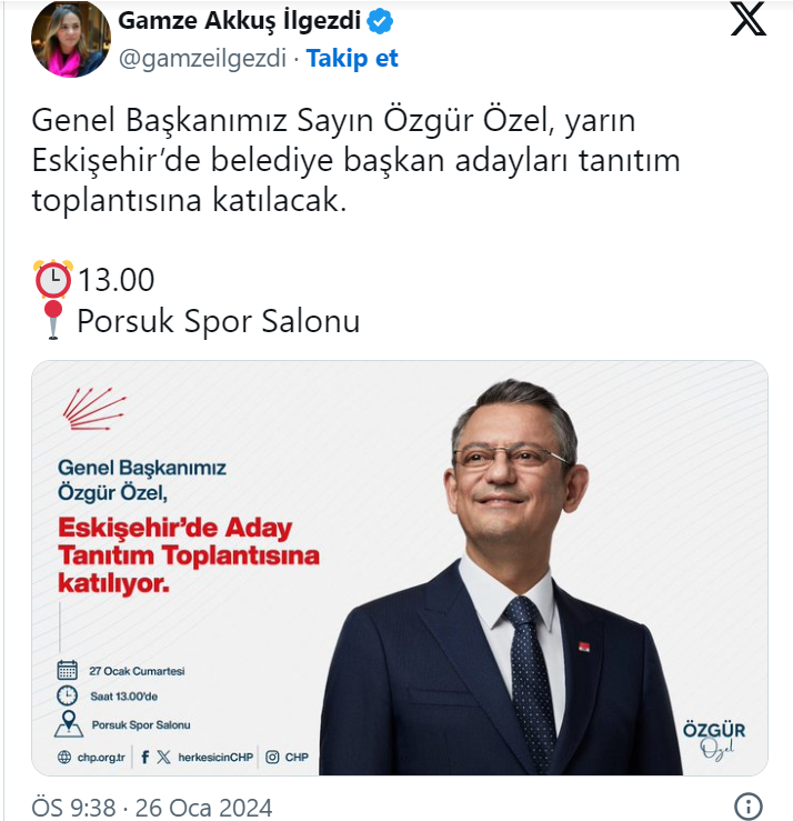 Cumhuriyet Halk Partisi'nden (CHP) istifa eden Ataşehir Belediye Başkanı Battal İlgezdi'nin eşi CHP İstanbul Milletvekili Gamze Akkuş İlgezdi, eşinin istifası ile ilgili sessizliğini bozdu. Herkesin tavrını merak ettiği İlgezdi, ilk olarak sosyal medya hesabından bir paylaşım yaptı. İlgezdi, CHP Genel Başkanı Özgür Özel'in Eskişehir'de katılacağı aday tanıtım toplantısını paylaştı.