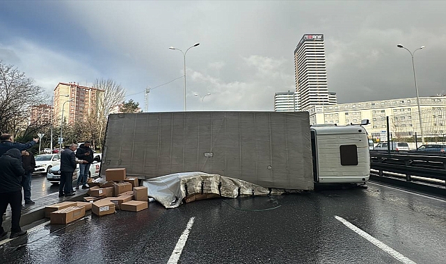 Beylikdüzü D-100 kara yolunda devrilen kamyonun sürücüsü yaralanarak tedavi altına alındı.
