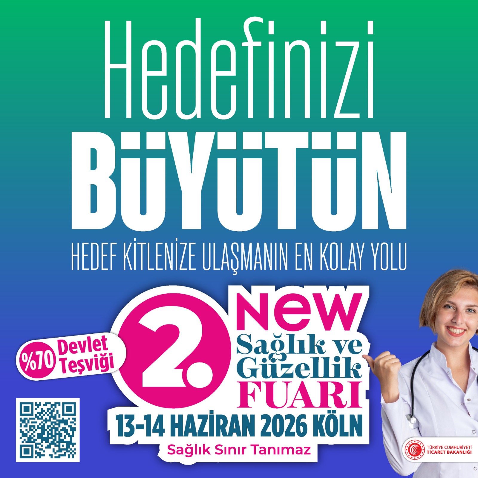 FUAR TİCARET BAKANLIĞI TEŞVİK LİSTESİNDE2. NEW Health & Beauty Expo 2026’nın, Türkiye Cumhuriyeti Ticaret Bakanlığı’nın yurtdışı desteklenen fuarlar listesinde yer aldığını belirten Fuarın Genel Koordinatörü İbrahim Taş, fuara Türkiye’den katılacak firmalar için önemli avantajlar bulunduğunu ifade etti.