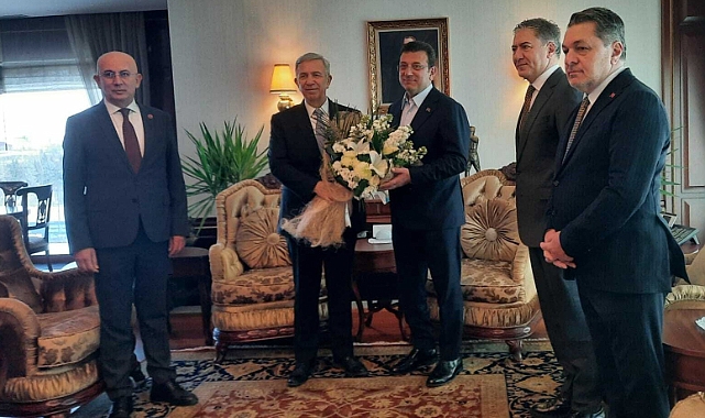 İstanbul Büyükşehir Belediye Başkanı ve CHP'nin 23 Mart'ta yapılacak ön seçimdeki cumhurbaşkanı adayı Ekrem İmamoğlu, Ankara Büyükşehir Belediye Başkanı Mansur Yavaş’ı ziyaret etti.Ekrem İmamoğlu'nu Ankara Büyükşehir Belediyesi girişinde Ankara Büyükşehir Belediyesi Özel Kalem Müdür Vekili Nevzat Uzun ve Ankara Büyükşehir Belediyesi Başkan Vekili Faruk Köylüoğlu karşıladı.Görüşmeye, CHP Grup Başkanvekili Murat Emir ve CHP Ankara İl Başkanı Ümit Erkol da eşlik ediyor. Yavaş, İmamoğlu’nu makamında karşıladı ve beyaz çiçek buketi sundu.