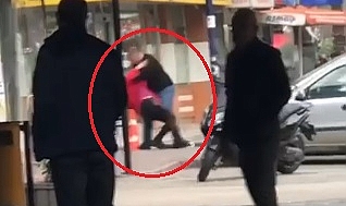 Sokak ortasında kadına şiddet kamerada