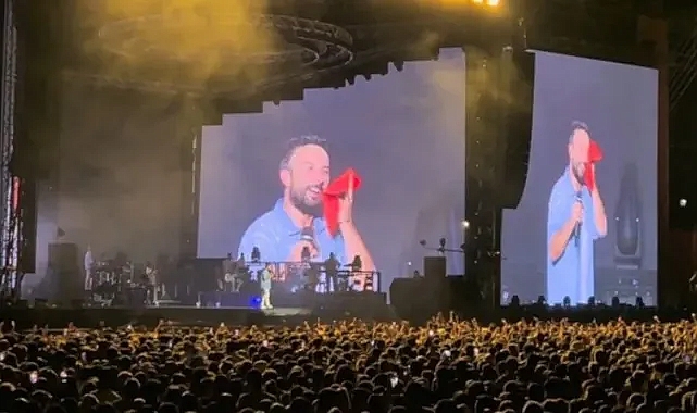Samsun'da sahne alan Tarkan, konser esnasında terini sildiği havluyu ön sıralardaki seyircilere doğru attı.