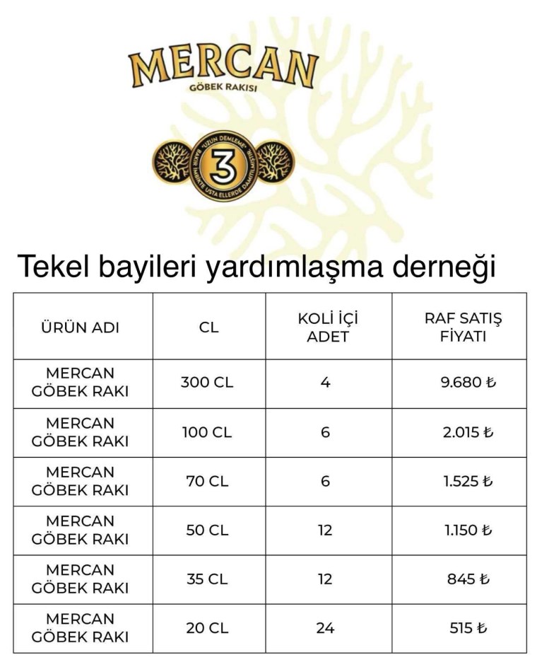 Alkollü içkilerde zam yağmuru devam ediyor. Tekel Bayileri Yardımlaşma Derneği (TBYD) Başkanı Erol Dündar, Mercan göbek rakı grubuna zam geldiğini duyurdu.
